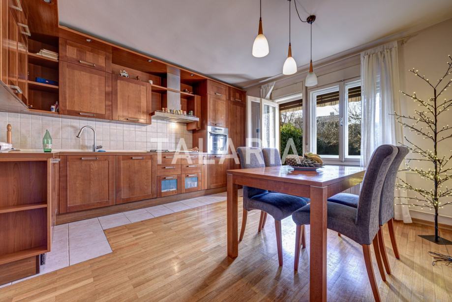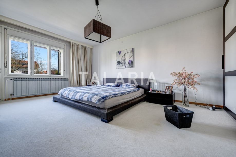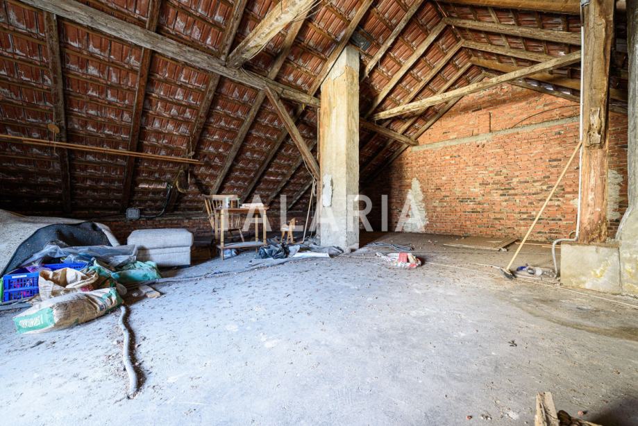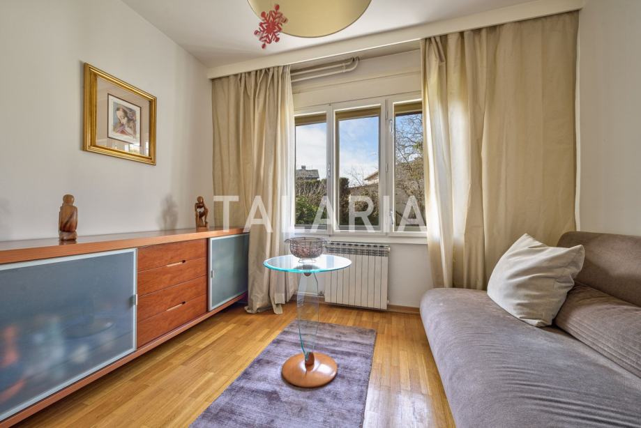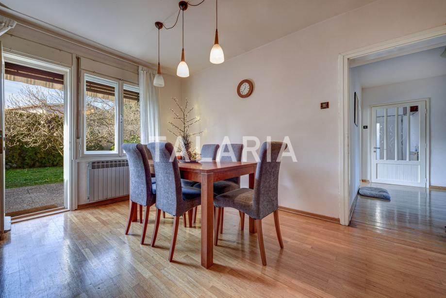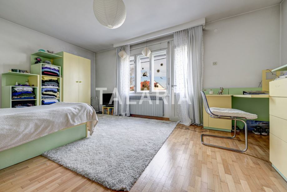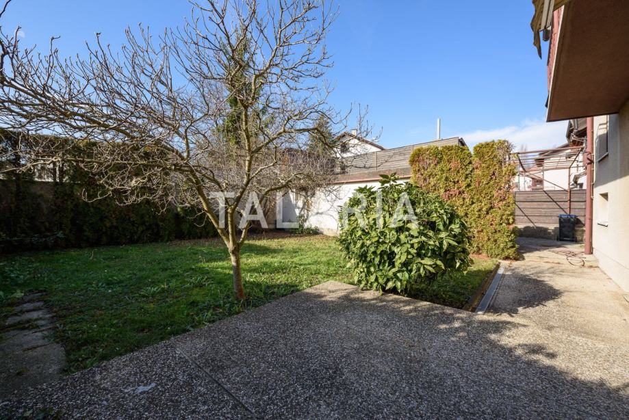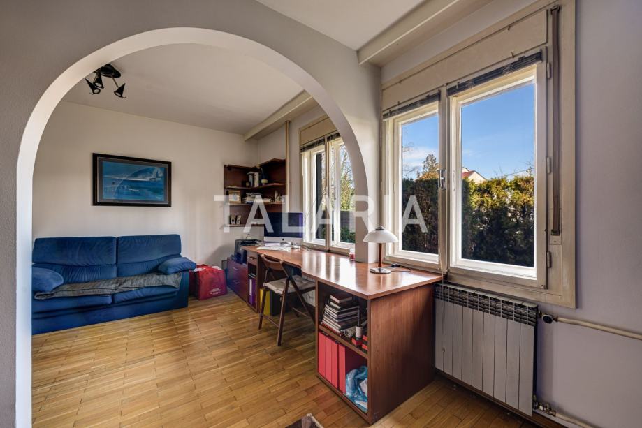 Prodaje se (dvojna) obiteljska kuća na sjajnoj, izuzetno mirnoj i zelenoj, mikrolokaciji Laščine, kompletno lišena buke i prometa. Položena je na zemljištu od 366 m2 od čega 140 m2 tlocrtno otpada na kuću a ostalo je okućnica i vrt. Kuća je koncipirana je kroz 4 etaže; podrum, prizemlje, kat i potkrovlje. PODRUM koji je nižeg stropa čine ostava, kotlovnica, vešeraj i slično. NA PRIZEMNOJ etaži je glavni ulaz u kuću u kojoj je prostrani dnevni boravak, zasebna kuhinja koja se nastavlja na malu terasu i vrt, radna soba, gostinjska soba te kupaona. NA KATU su 4 spavaće sobe i jedna kupaona. Zadnja etaža POTKROVLJA je potpuno neuređena ali nudi sjajne mogućnosti adaptacije. Kuća ima mali vrt s prednje ulične strane te intimniji i osjetno veći vrt sa dvorišne strane. U dvorištu se nalazi garaža za jedan auto te još 2 parkirna mjesta. Kuća se, zbog svog koncepta i unutarnjeg stubišta izmaknutog u stranu, vrlo lako može etažirati u 3 odvojena stana (prizemlje, kat i potkrovlje, a podrum kao zajedničke prostorije), što je dodatni bonus ove nekretnine.