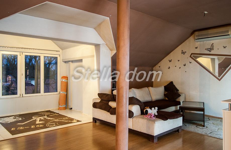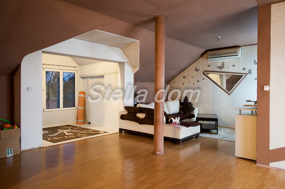 Kuća se sastoji od dvije etaže koje su povezane kružnim stepeništem. Na prvoj etaži je trosobni stan koji se sastoji od dnevnog boravka, dvije sobe, kuhinje sa blagovaonicom, kupaonica sa WC-om. Druga etaža je visoko potkrovlje u kojem je trosobni stan koji se sastoji od sljedećih prostorija: veliki dnevni boravak sa blagovaonicom, velika kuhinja, velika kupaonica sa WCom i terasa.