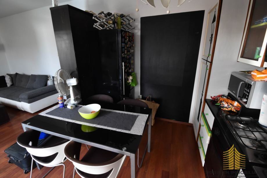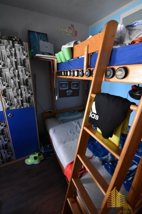 Stan se sastoji od ulaznog hodnika, kuhinje, dnevnog boravka/blagavaonice, tri spavaće sobe od kojih su dvije povezane s loggiom, kupaonice i odvojenog wc-a.