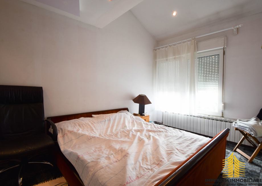 Ova obiteljska kuća smještena je u slijepoj ulici pružajući mir i tišinu. U blizini je škole, trgovina, dječjeg vrtića i svih sadržaja potrebnih za praktičan život.