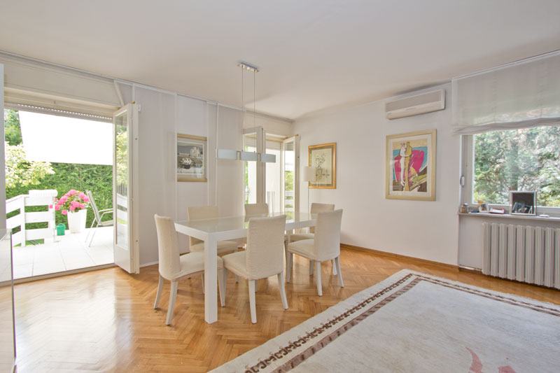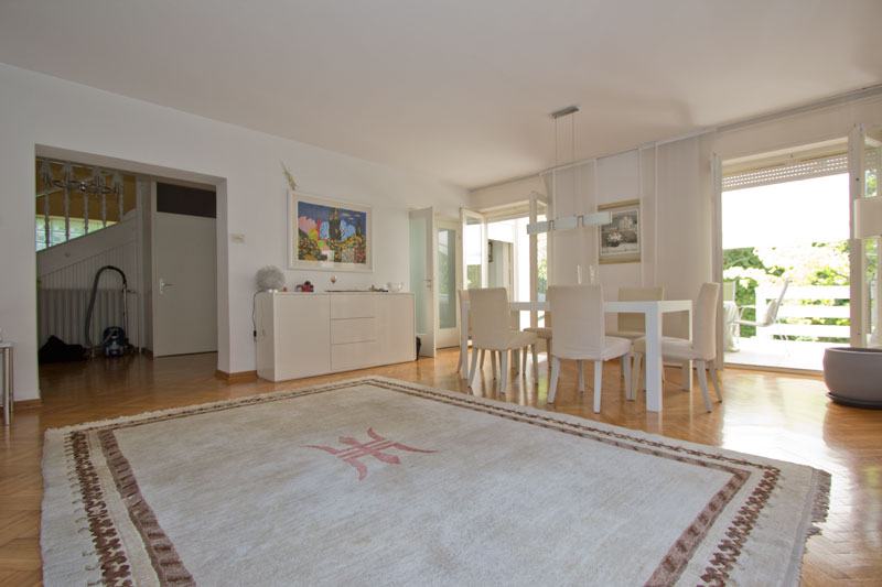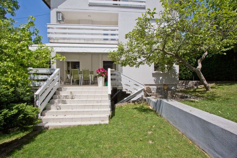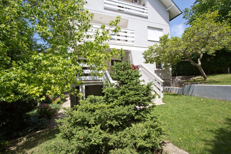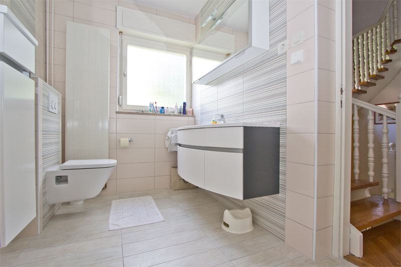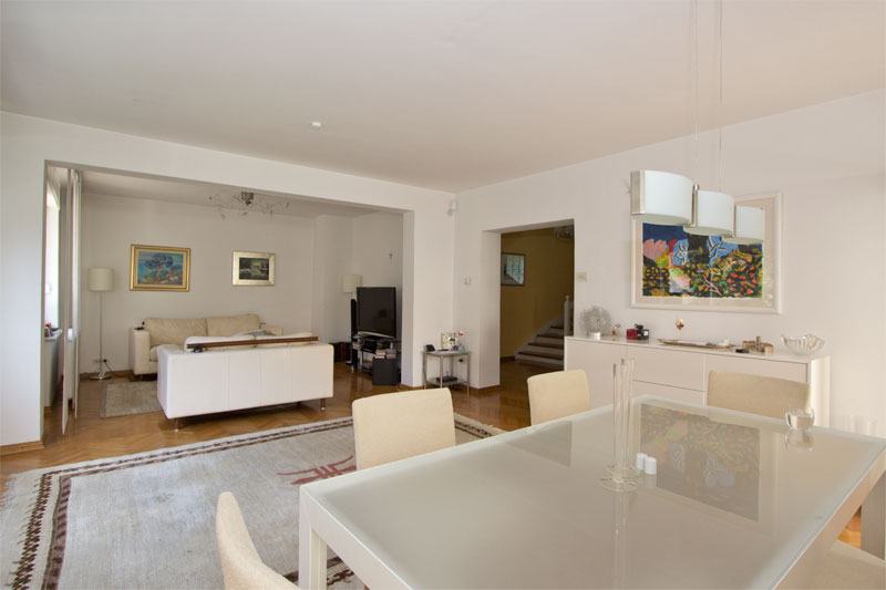 Vrlo ugodna, novoadaptirana samostojeća kuća s izlazom na prelijepi vrt od 500m2. PRIZEMLJE: ulazni hodnik, wc, dnevni boravak s blagovaonicom, kuhinja, terasa, vrt. PRVI KAT: 3 spavaće sobe, kupaonica, balkon. DRUGI KAT: 2 spavaće sobe, kupaonica, 2 balkona. PODRUM: vešeraj, garaža za 1 auto, spremište. Ispred kuće je parking za još 1 auto. Kuća je klimatizirana (6 jedinica), ima alarm, portafon, SAT TV priključak, LCD TV, podno grijanje (kupaonice, kuhinja), roštilj, automatska garažna vrata, automatsko navodnjavanje vrta.