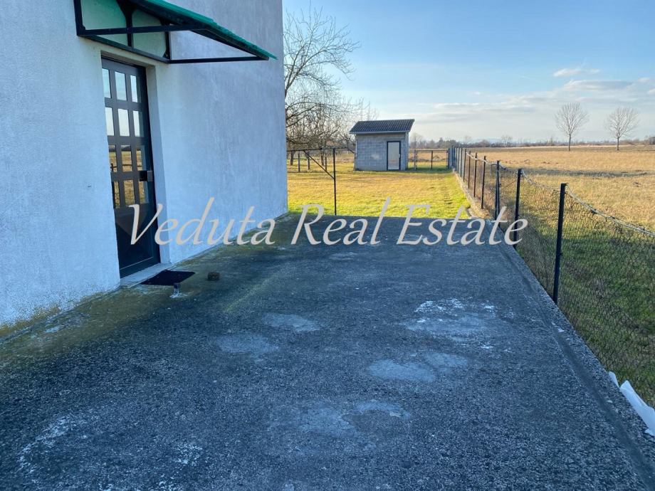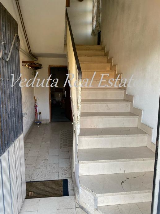 U prizemlju se nalazi: kotlovnica i 2 zasebna garažna parkirna mjesta, u istoj razini pokraj kuće se nalazi dodatna garaža/radionica od 40 m2.