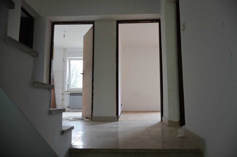 Renovation work has begun on the house: water installations have been replaced, new windows and doors were installed in 2024, and there is potential for gas connection.