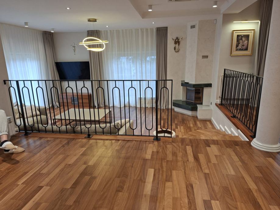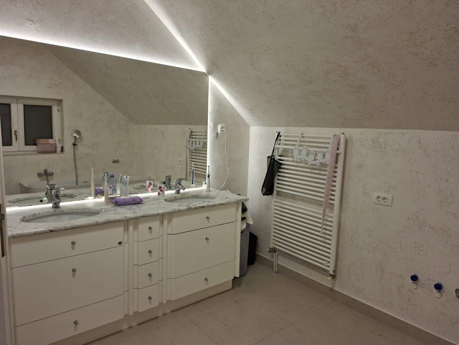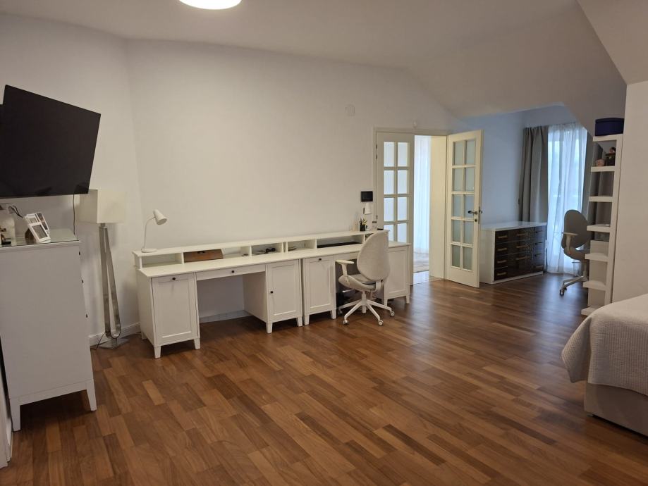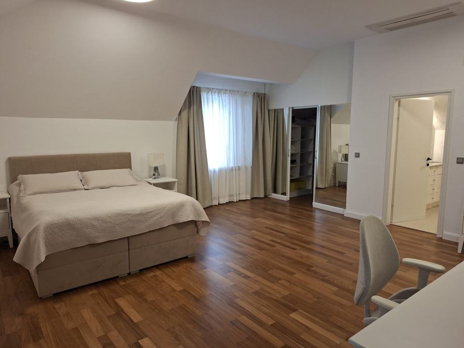 Na katu se nalazi izuzetno velika master soba s kupaonom i garderobom, hodnik, radni dio, kupaona, dvije spavaće sobe i garderoba.