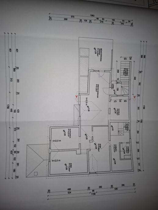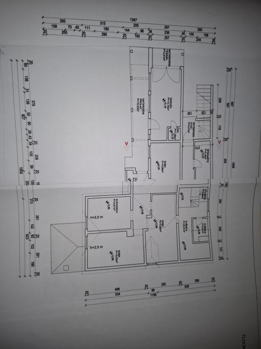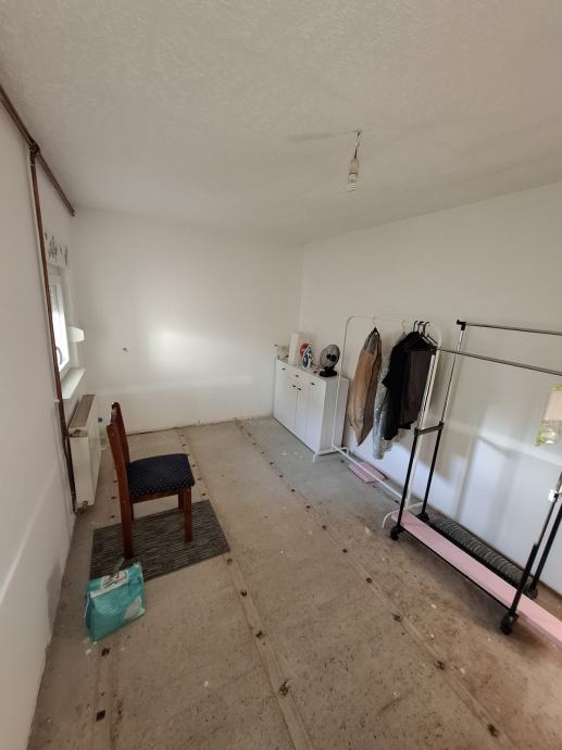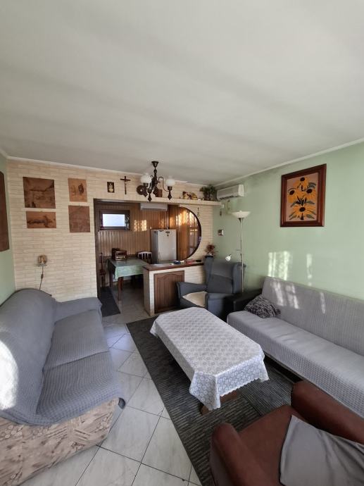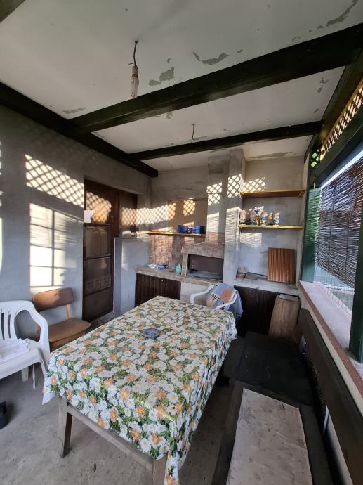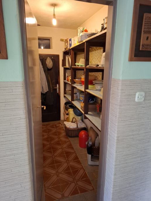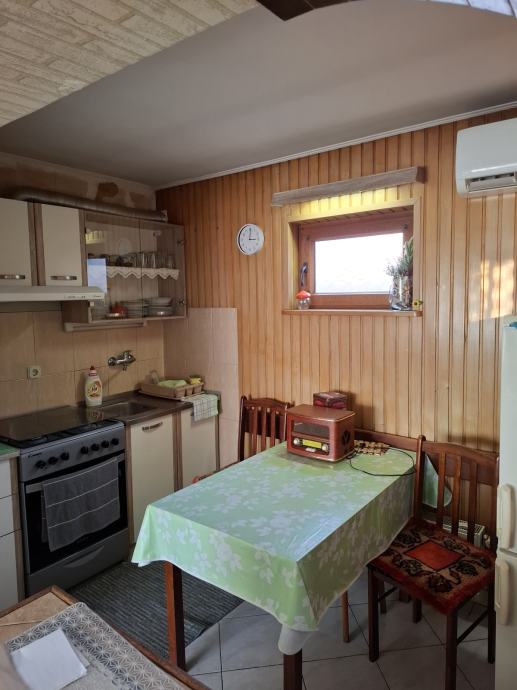 Prizemlje- 2 spavaće sobe, kuhinja, dnevni boravak (s klima uređajem),predsoblje, hodnik, kupaonica, ostava, kotlovnica, terasa, garaža/ radionica