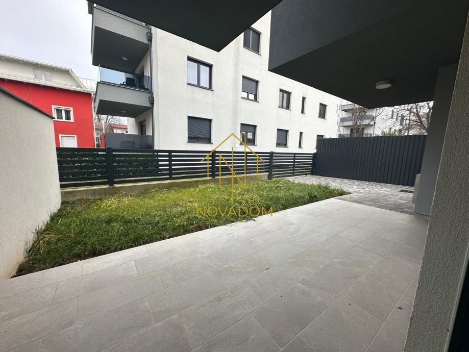 Dvoetažni 4s stan (110m2). Stan se sastoji od prostranog dnevnog boravka s blagovaonom i kuhinjom, privatnog vrta i zasebnog wc-a u prizemlju. Na katu se nalaze tri spavaće sobe od kojih je jedna bračna soba s graderobom predviđena za walk-in ormar te kupaone s wc-om. (Prilikom gradnje korišteni su vrhunski materijali, uključujući aluminijsku stolariju, električne podizače za rolete, podno grijanje, klimatizirane prostorije). Izvanstandardna visina stropova (2,80m). Mogućnost parkinga za 2 automobila u dvorištu zgrade.