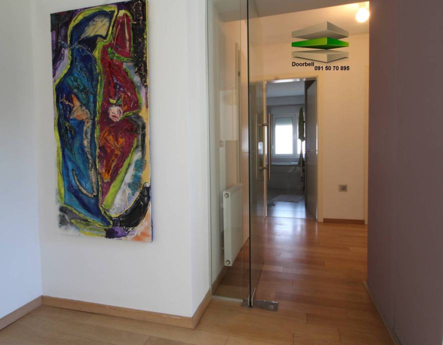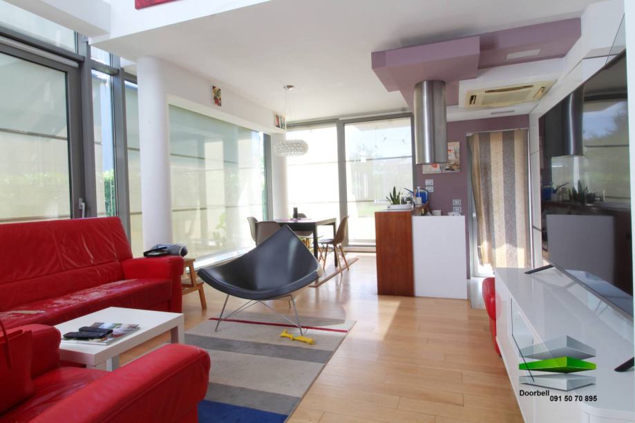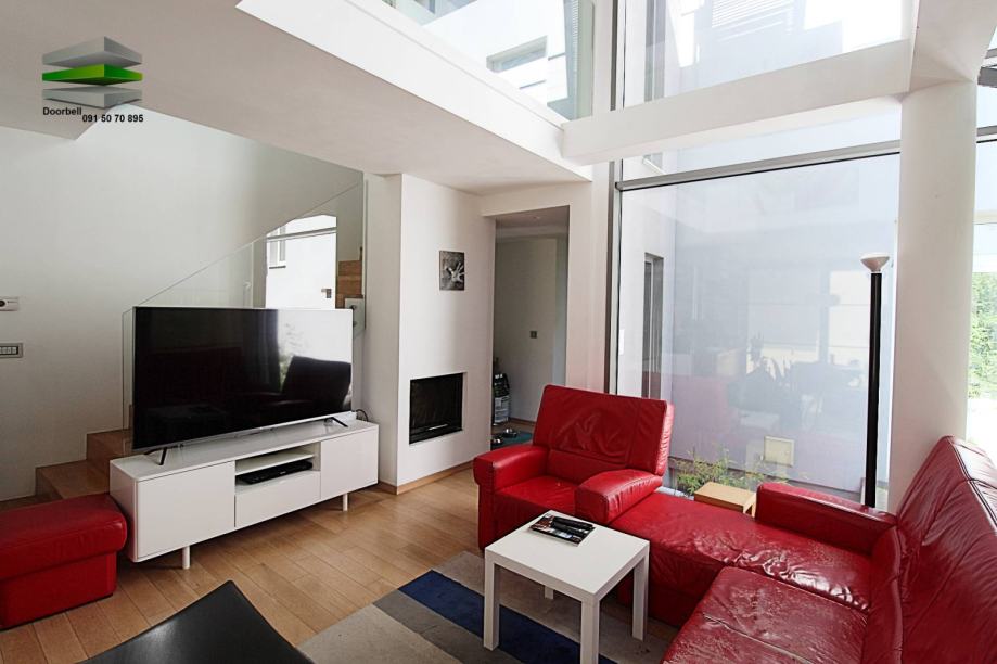 Kuća je vrlo moderno koncipirana na način da se u prizemlju nalazi dnevni boravak s kuhinjom, jedna velika soba koje se koristi kao radna te toalet za goste. Na katu su smještene dvije sobe s dvije kupaone, a u potkrovlju su još dvije sobe i kupaona. U podrumu se nalazi kotlovnica te još jedna prostorija koja se može urediti kao wellness prostorija.