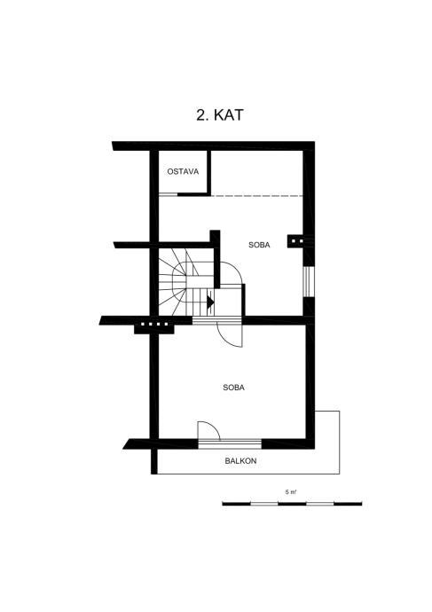 Stapenice dalje vode na drugi kat na kojem se nalaze isto dvije velike sobe od kojih je jedna djelomično pod nagibom.