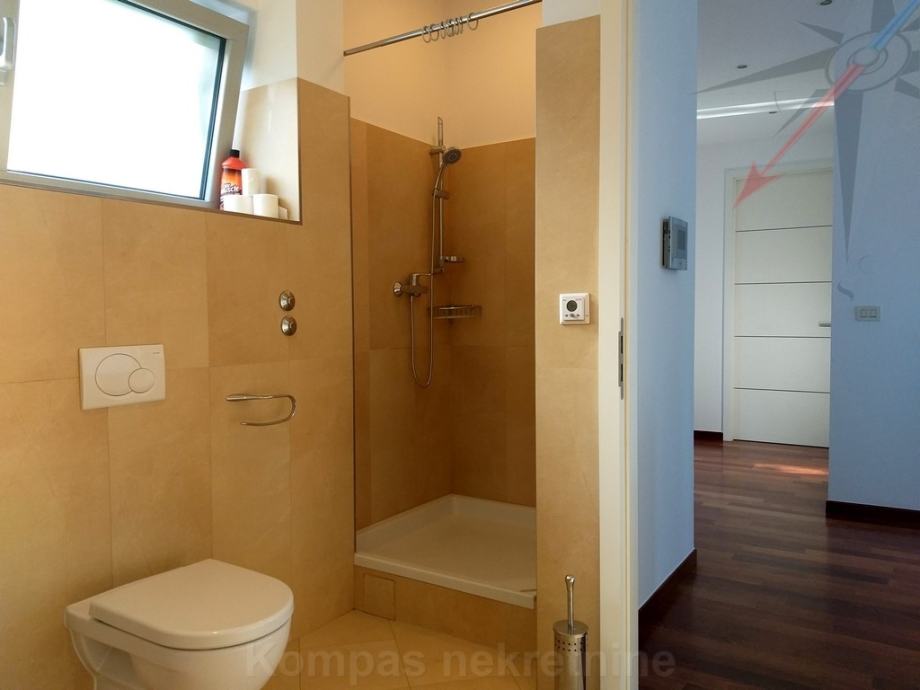 The house has a terrace with total area of 150 m2, landscaped garden (500 m2), air conditioning in every room, gas central heating, floor heating, sauna, alarm, optical internet, electric shutters, detectors for CO, external staircase, garage for two vehicles, with possibility of parking in front of the garage.