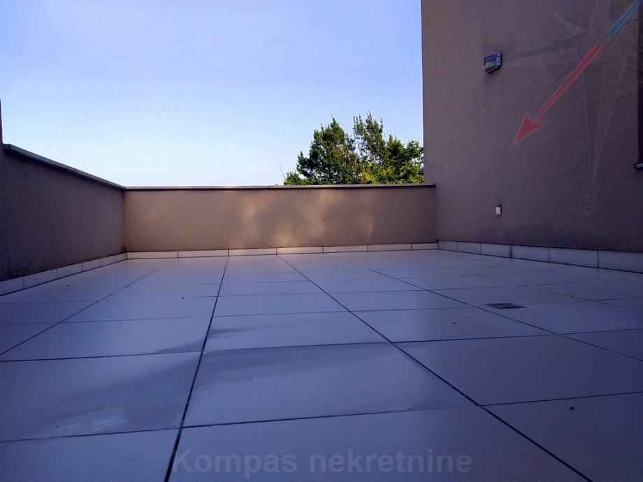 Kuća ima terase ukupne površine 150 m2, uređeni vrt ( 500 m2 ), klima uređaj u svakoj sobi, plinsko centralno grijanje, podno grijanje, alarm, rolete na struju, detektore za CO, optički internet, saunu, vanjsko stepenište, garažu za dva vozila, uz mogućnost parkiranja ispred garaže.