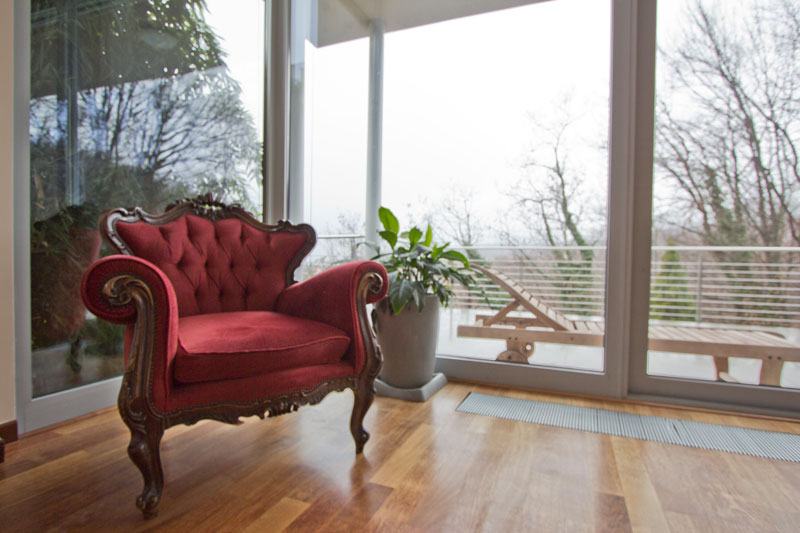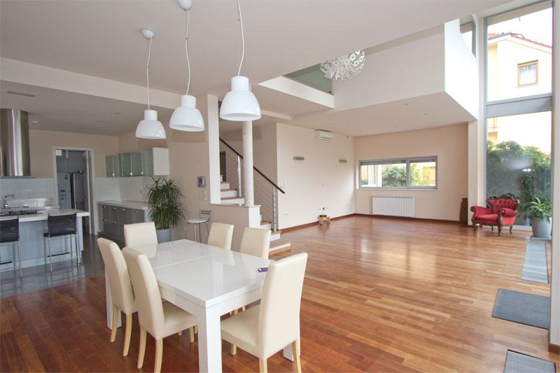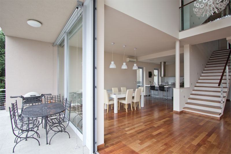 Beautiful, modern house in Sestine with indoor pool and sauna, is indented on 3 levels, on the upper floors are 6 bedrooms and 3 bathrooms, and a garage with direct access into the house. On the lower floor is a spacious living room with a large glass wall facing the greenery and forest, kitchen with dining area, terrace and garden and an indoor pool.