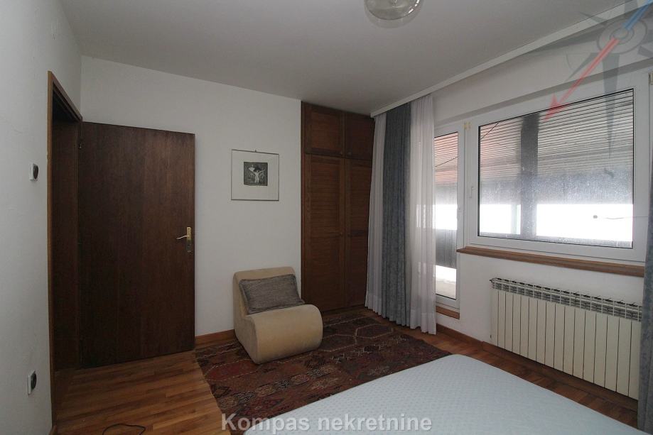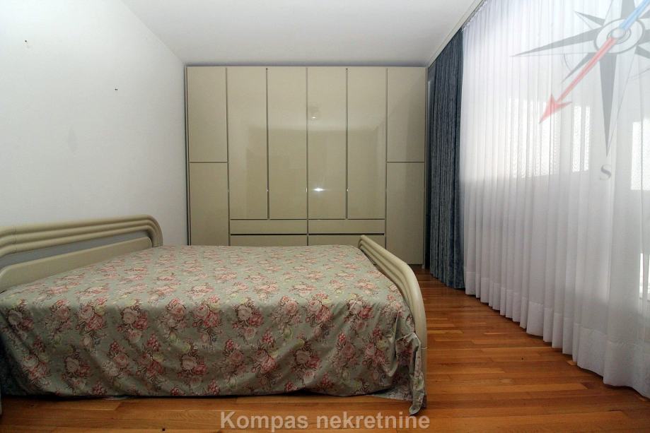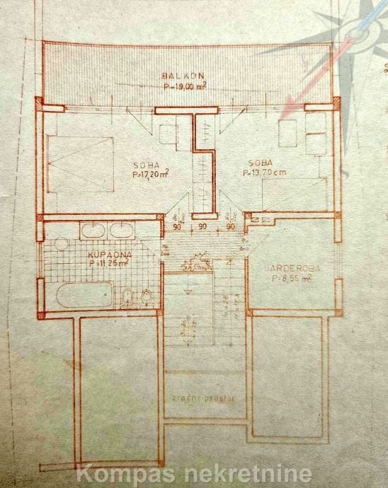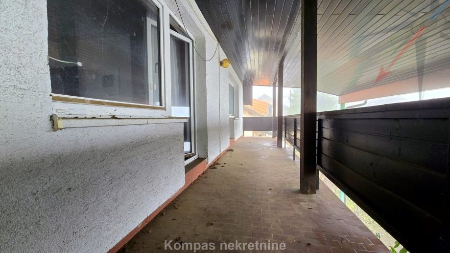 GORNJA ETAŽA: dvije sobe, garderoba, kupaonica, natkriveni balkon od 19 m2.