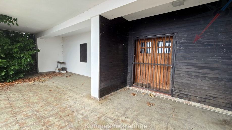 SREDNJA ETAŽA: glavni ulaz, kuhinja, veliki dnevni boravak, dvije male sobe, kupaonica, djelomično natkrivena terasa od 26 m2.