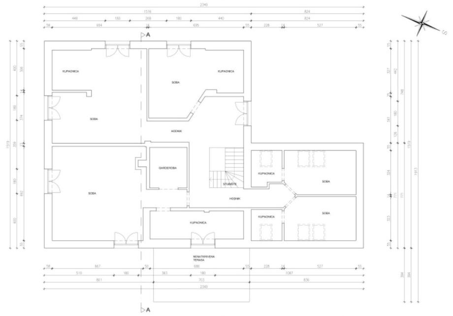 Na gornjoj etaži je 5 spavaćih soba, svaka ima svoju kupaonicu, dok jedna ima i vlastiti walk-in ormar.