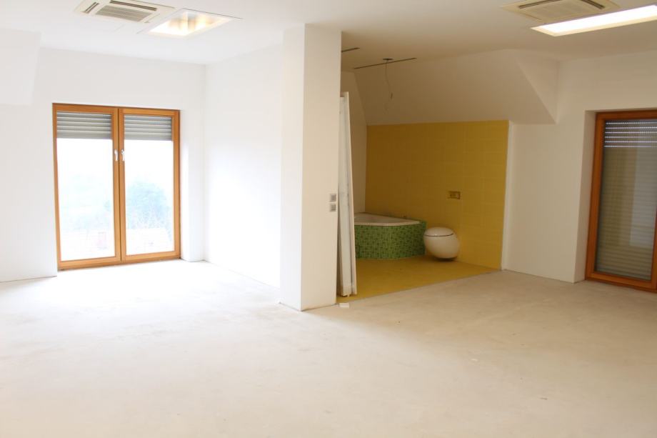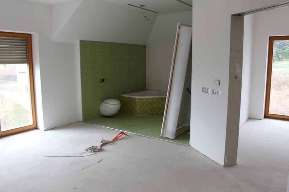 Villa je trenutno u visokom roh bau stanju – fasada je gotova, nije obojana, unutar kuće je završeno sve osim podova, kako bi budući vlasnici uredili interijer po želji. Kupaonice su sve napravljene, postoje sva vrata sobna, no nisu postavljena.