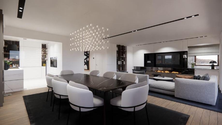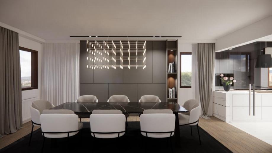 Prodaje se nova kuća sa 2 dvoetažna stana(212 i 215 m2),4 garaže i 2 vanjska parkirna mjesta te vrtom od 400 m2.