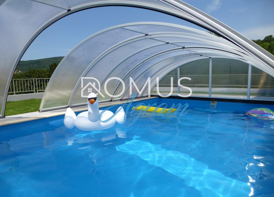 U dvorištu se nalazi natkriveni bazen veličine 8 x 5 m dubine 2 m sa umjetnim valovima.