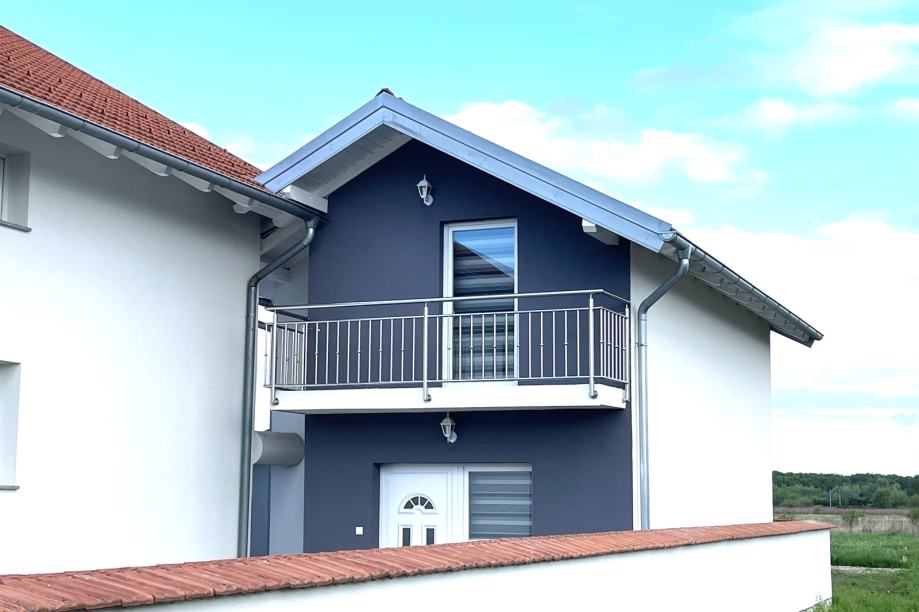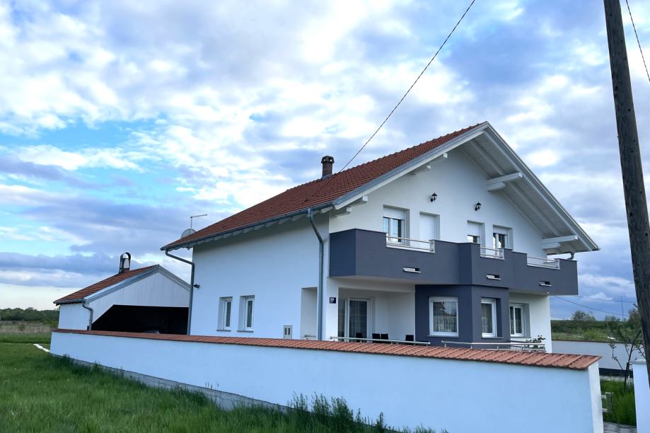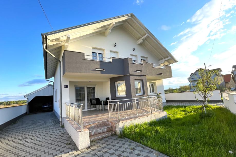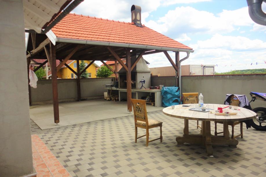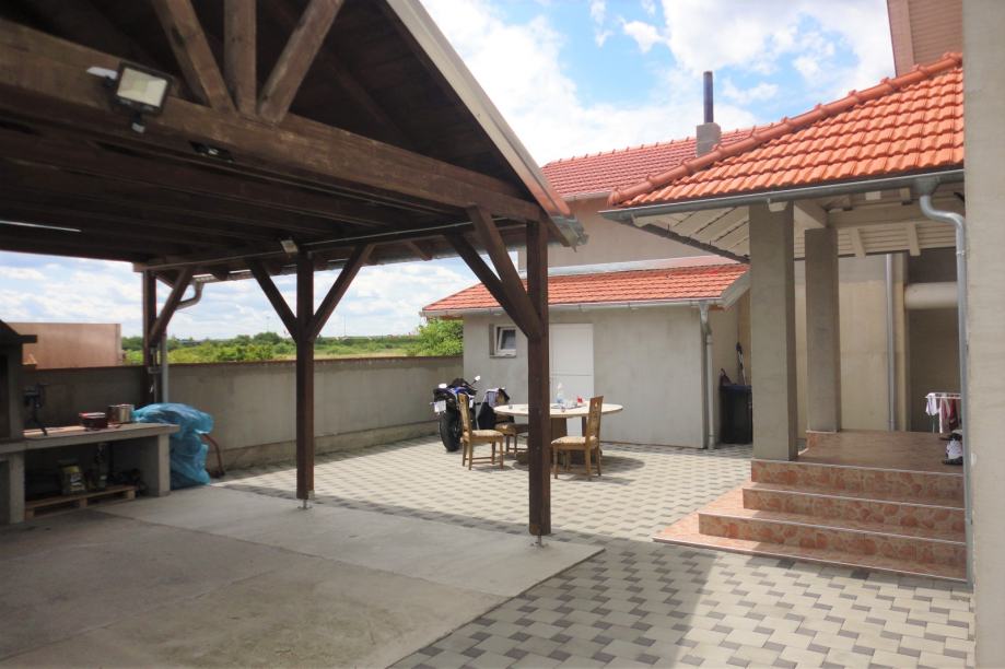 Sa prednje strane kuće je ograđena okućnica sa uređenim travnjakom i popločanim kolnim ulazom a sa stražnje strane je izvedena vrtna sjenica ( paviljon ) 33m2 postavljena na betonskoj ploči a izrađena od drvene konstrukcije i pokrivena crijepom koja svojim ukućanima omogućuje kvalitetan boravak na otvorenom.