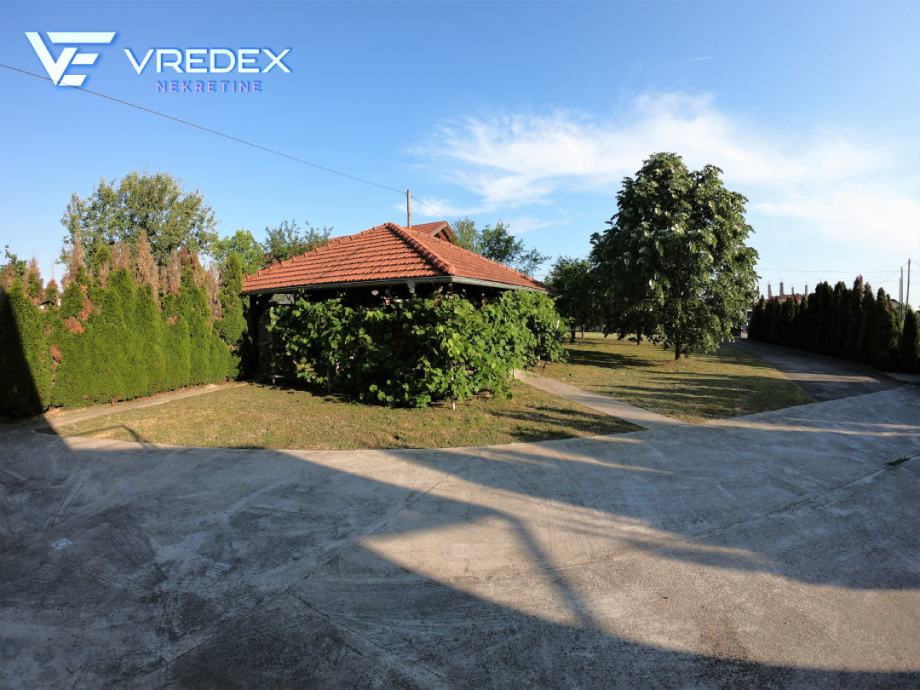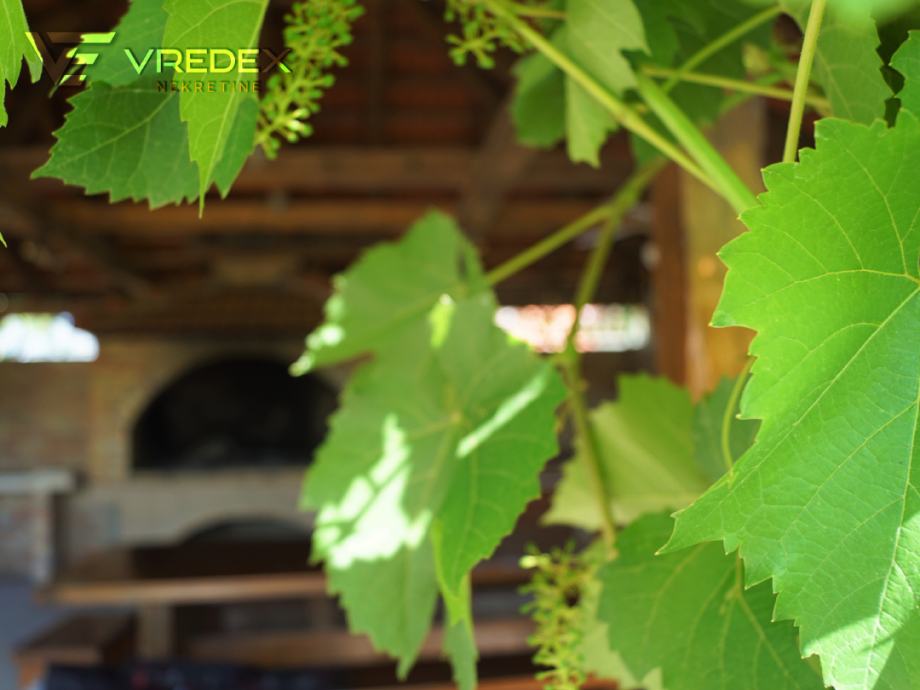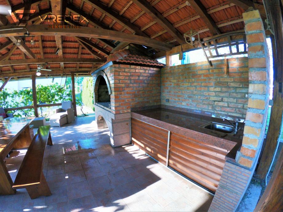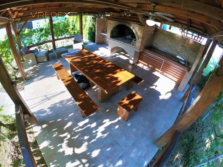 Pored kuće se nalazi velika sjenica za druženje sa električnim ražnjem, radnim pultom i vodom.