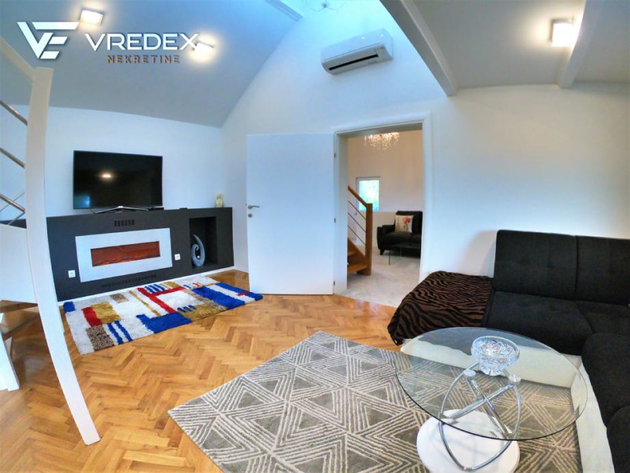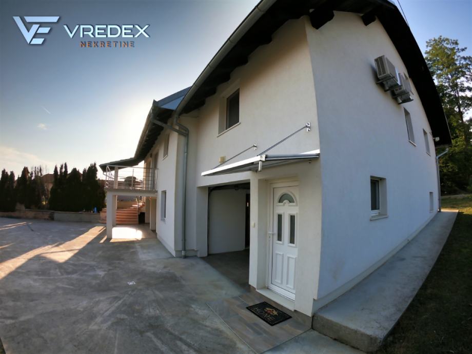 We would like to point out as an advantage that the house is sold fully furnished and equipped (2 equipped kitchens, 3 living rooms, 2 bathrooms, 3 toilets, 3 bedrooms and 2 separate entrances), a forest that surrounds the house and provides peace and privacy, spacious and fenced yard, spacious garage of 50m², 7 + outdoor parking spaces, gazebo that accommodates 15+ people with large barbecue and outdoor kitchen counter "water & electricity" (ideal for larger parties and celebrations), close to the Zagreb bypass and away from noise and cars, can be used as two separate houses due to 2 separate entrances.