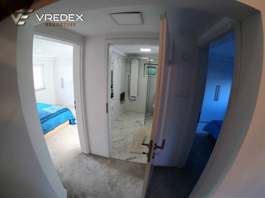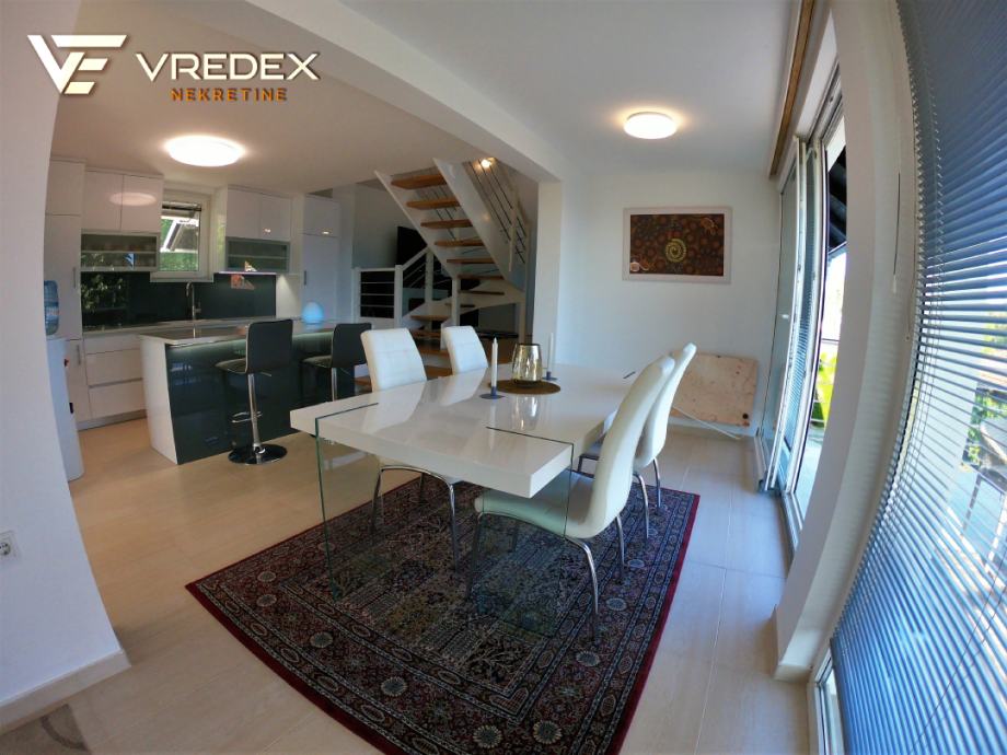 Prvi kat čine: dnevni boravak sa kuhinjom (izlaz na balkon), 3 spavaće sobe od kojih 1 u potkrovnom prostoru, kupaonice sa tuš kabinom,