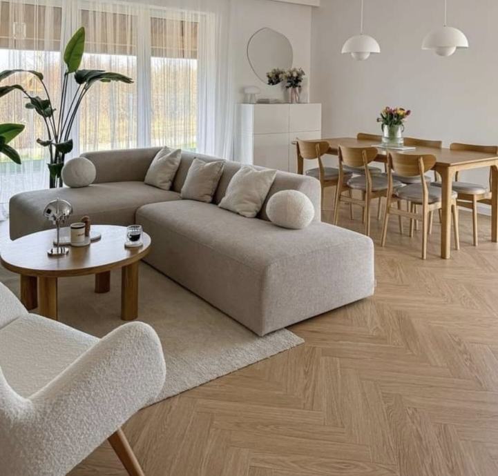 Na prvoj etaži nalazi se svijetao i ugodan dnevni boravak povezan s kuhinjom, čineći otvoren i topao prostor idealan za obiteljska druženja, odmor i svakodnevni život. Ovaj dio kuće odiše osjećajem doma, uz dovoljno prostora za boravak, blagovanje i opuštanje.