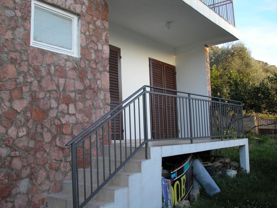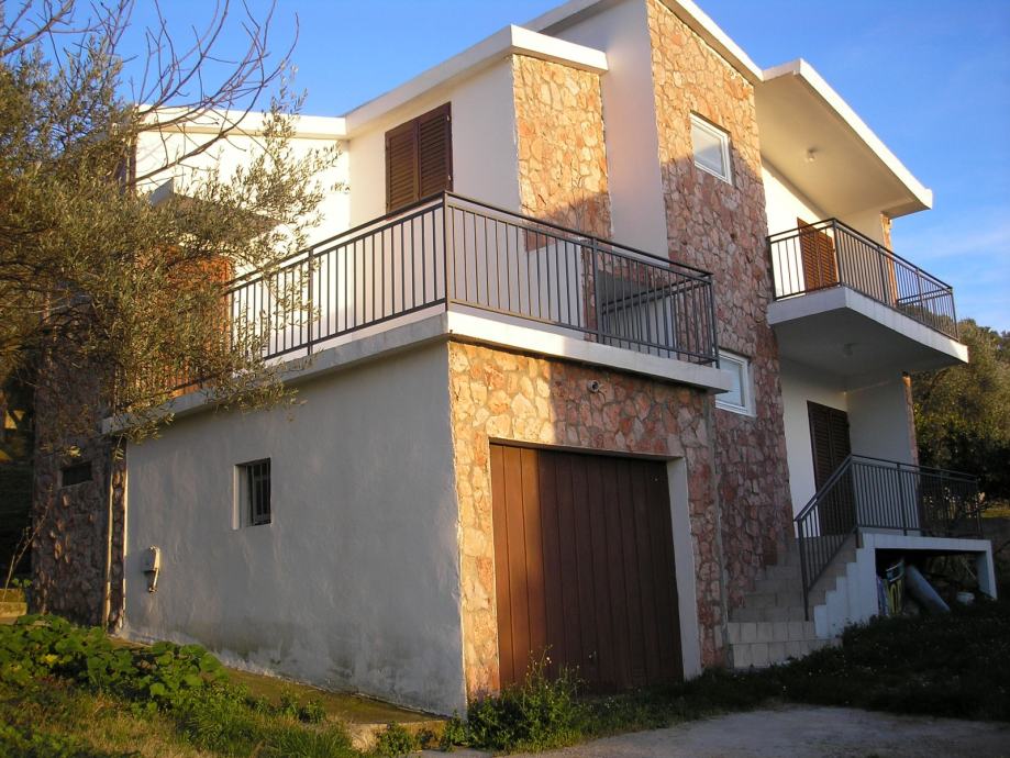 Koncipirana kao kuća s dva stana i dva odvojiva ulaza. Prizemlje dvosoban stan i garaža te sprat s trosobnim stanom.