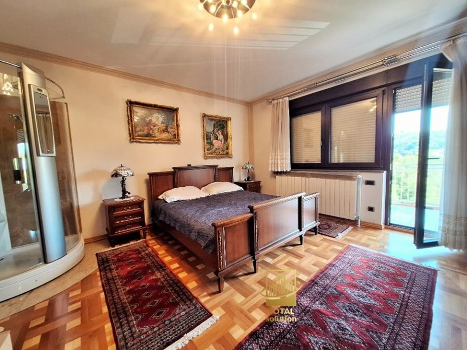 Zagreb, Gornji Stenjevec, prodaje se ekskluzivno opremljena vila ukupne površine 550 m2 na parceli 2800 m2, smještena na mirnoj i idiličnoj mikrolokaciji u okruženju prirode, a opet nedaleko od glavne prometnice Aleje Bologne. Osim stambenog objekta- vile, na parceli se nalaze i prostrana sjenica, garaža sa kupaonom, drvarnica, sušiona i natkrivena profesionalna pečenjara kao zasebni objekt, a u samoj vili se nalazi još jedna grijana garaža za dva automobila.