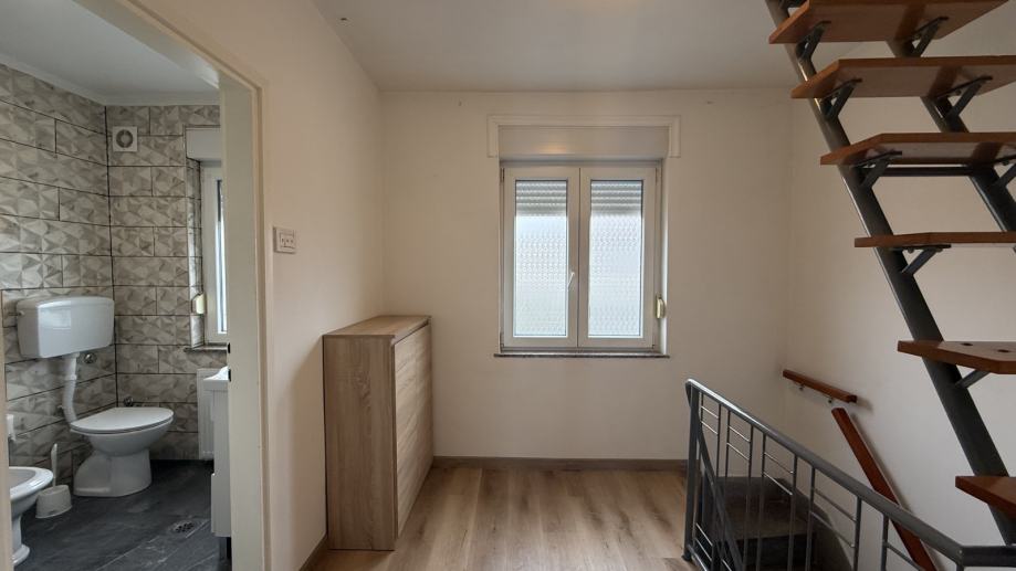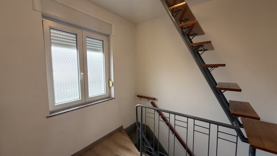 Kuća se sastoji od podruma,predsoblja,ostave,kuhinje,dnevnog boravka s izlazom na terasu i dvorište te podruma i na katu se nalazi kupaonica i prostrana spavaća soba iz koje se izlazi na balkon te tavana.