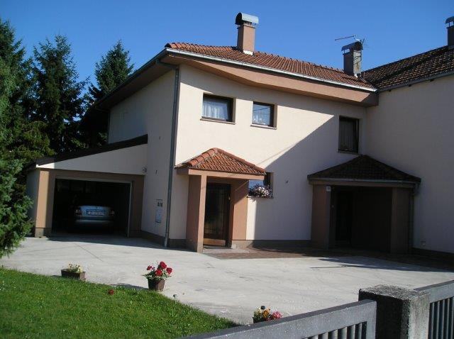 Obiteljska kuća na mirnoj lokaciji sa dva stana.Stan u prizemlju 84,95 m2 sastoji se od uređenog dnevnog boravka te uređene kuhnje, blagavaone , kupaonice , spavaće i dnevne sobe iz koje postoji izlaz na uređenu 35 m2 terasu.Stan na katu je nedovršen velićine 62 m2 , spojeni plin, struja, voda.Instalacija i odvod za kuhnju i kupaonicu , izlaz na natkrivenu terasu.Svaki stan može koristiti svoj ulaz iz dvorišta a moguće je koristiti i samo jedan ulaz.Podrum je veličine 28,54 m2 u potpunosti izoliran.Garaža je natkrivena veličine 14,33 m2.Blizina autobusne stanice , vrtića , škole, ljekarne ,sportskog centra , svi trgovački centri u krugu od 1km.Puno zelenila i uređeni okoliš. Ugodna lokacija za miran život a svega 15 min do centra grada.Odlična povezanost i priključak na auto cestu , blizina aerodroma.