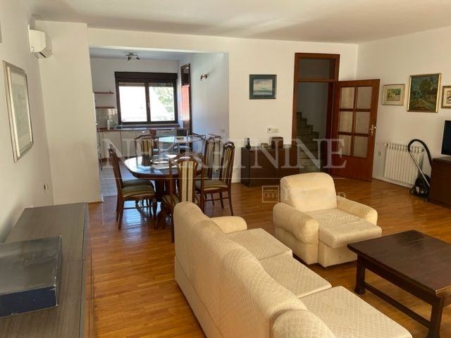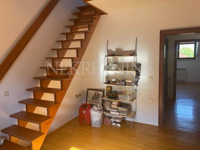 Na atraktivnoj lokaciji u širem centru grada u naselju Trnje, Kruge, svega sto metara udaljenosti od ul. grada Vukovara u ponudi je samostojeća obiteljska kuća. Kuća se sastoji od dva etažna dijela. Prizemlje čini poslovni prostor netto korisne površine 47,65m2, što uključuje i vanjsko parkirališno mjesto. Na prvom i drugom katu se nalazi četverosoban dvoetažan stan, kojeg čine na prvom katu kuhinja, blagovaona, dnevni boravak i kupaona. Na drugom katu se nalaze tri spavaće sobe, od koje dvije imaju galeriju, i kupaona, netto korisna površina samog stambenog dijela iznosi 135,48m2. Uz stan je etažno vezan i uređeni podrum površine 61m2, vanjsko parkirališno mjesto i vrt površine 31m2. Ukupna netto korisna površina drugog etažnog dijela, stana, iznosi 199,58m2. U neposrednoj blizini nalaze se škola, vrtić, dom zdravlja, trgovina i svi ostali bitni društveni i javni sadržaji. Odlična prometna povezanost.