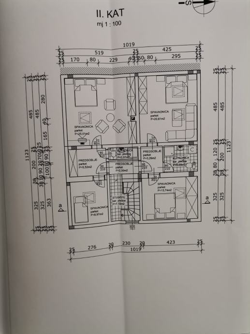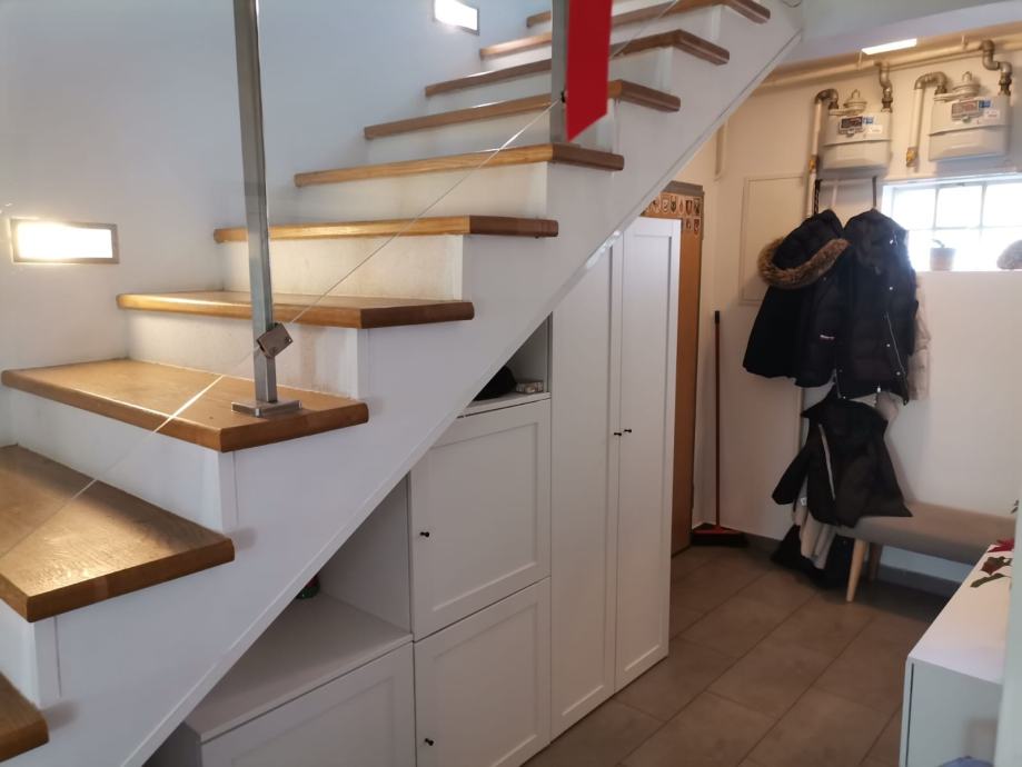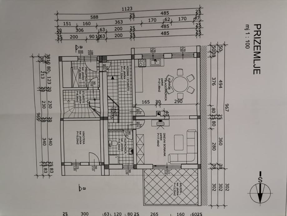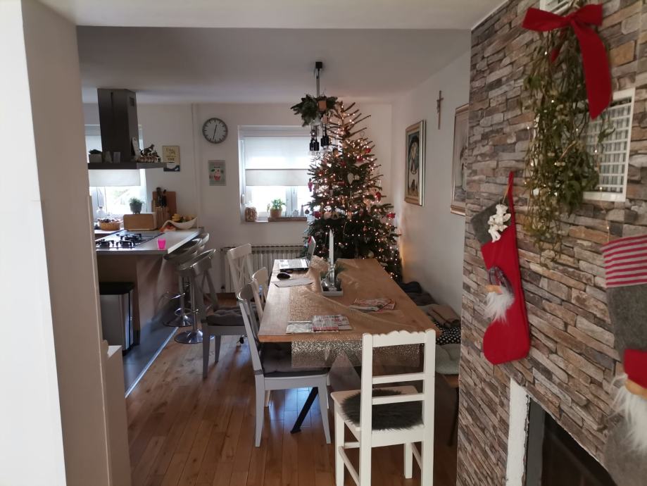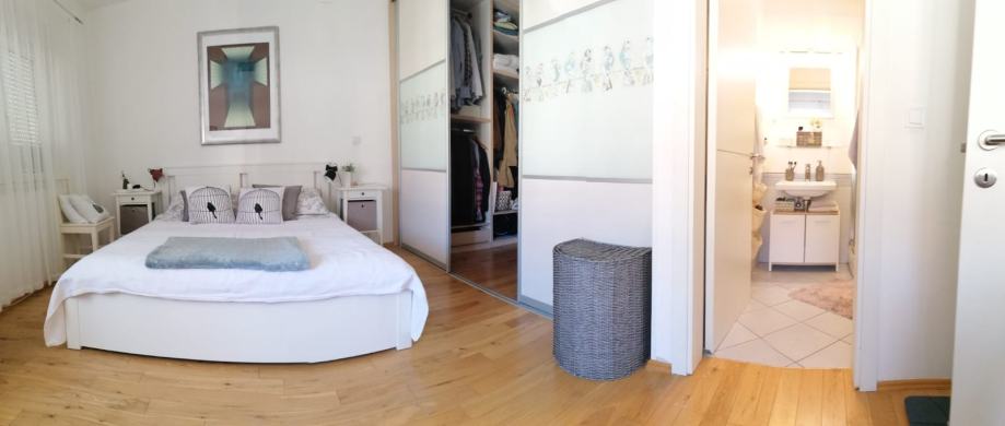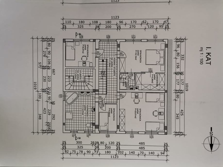 -prizemlje + vrt i i 1. kat jedan veliki šesterosobni stan cca 171 m2 + vrt i 2 parkinga, 3 kupaonice (kamin na drva, plinsko etažno grijanje sa spremnikom vode) kompletno uređeno i spremno za useljenje