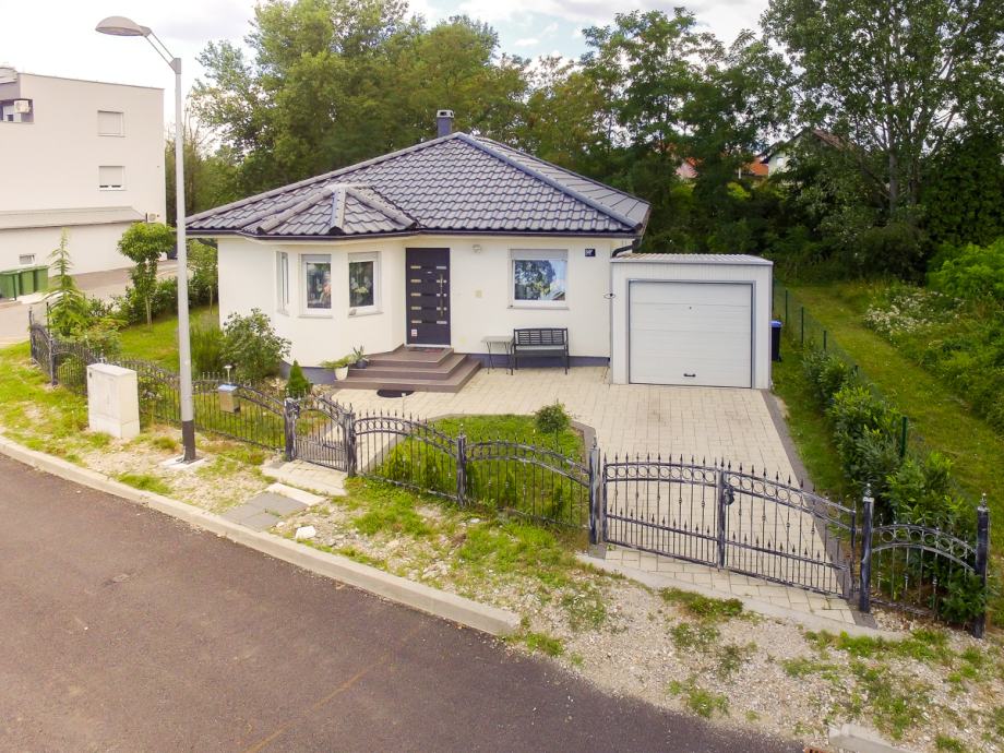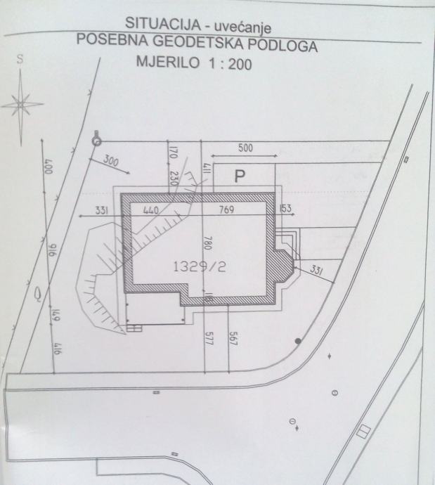 Pored kuće je garaža sa automatskim vratima (ne ulazi u istaknutu kvadraturu kuće)