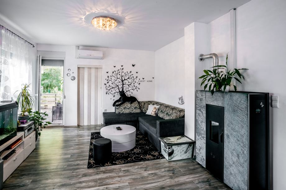 Grijanje je centralno (automatizirana talijanska peć/kamin) na pelete/biomasu, isplativo i toplo riješenje(trošak grijanja cijele kuće i vode cijelu zimu je oko 1500kn) bez puno održavanja i brige. Peć je dizajnirana za dvostruko veću kvadraturu tako da bez problema grije cijelu kuću i sanitarnu vodu.