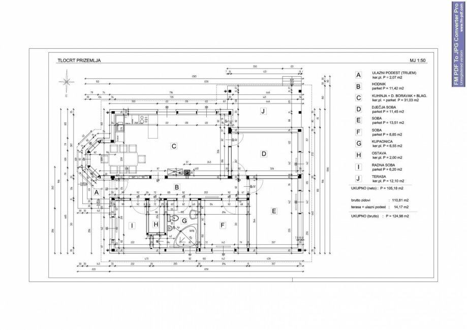 - dnevni boravak + kuhinja + blagavaona(31m2),