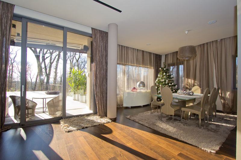 Luxurious new villa (630 m2) on the most desirable location, Tuškanac, extends over 3 floors. Close to downtown, beautiful view over greenery.