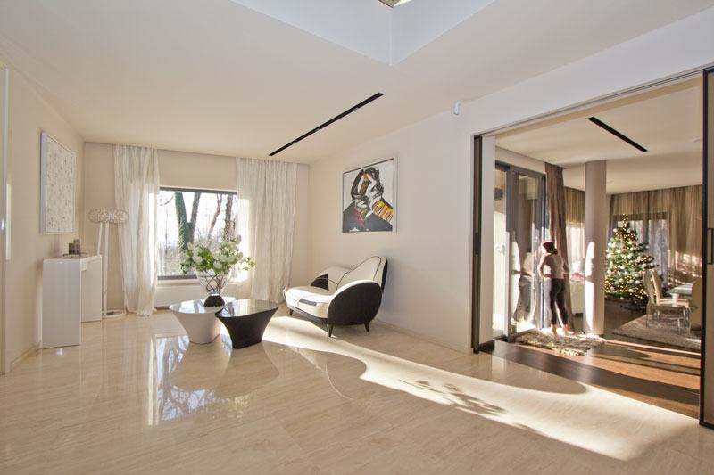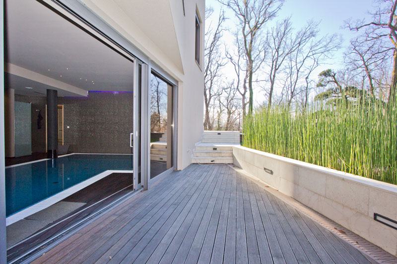 PODRUM: veliki bazen, prostor za odmor uz bazen (izlaz na vrt), sauna, prostorija za opuštanje, prostorija za druženje sa kaminom, prostorija sa spravama za vježbanje, vešeraj.