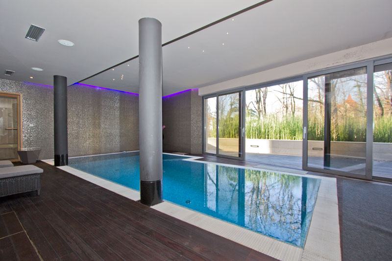 BASEMENT: A large swimming pool, relaxation area by the pool (access to the garden), a sauna, a relaxation room, lounge with fireplace, a room with exercise equipment, laundry room.