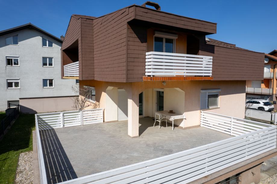U prizemlju se nalaze natkriveni ulaz, hodnik, stubište, soba, veliki dnevni boravak, kupaonica, kuhinja i blagovaonica, terasa ( djelomično natkrivena ) sa prilaznim stubama iz vrta.