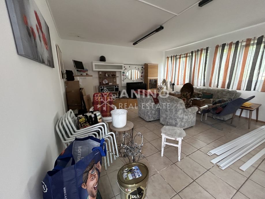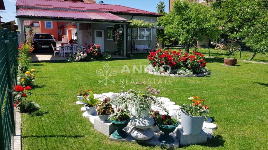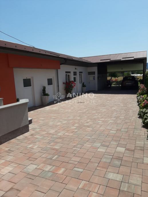 U dvorištu kuće ,u sklopu nje se nalazi još kotlovnica (vešeraj) sa wc-om tako da nakon vremena u dvorištu nije potrebno ulaziti u kuću ; ljetna kuhinja, soba za proslave( kao dnevni boravak za druženje) koja ima izlaz u predivni vrt okružen cvijećem, natkrivenog parkinga za dva automobila te poslovno - gospodarske zgrade koja ima industrijsku struju ,vodu i plin te cijevi za mogućnost centralnog grijanja.
