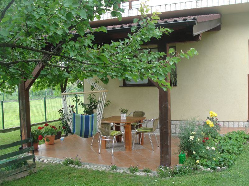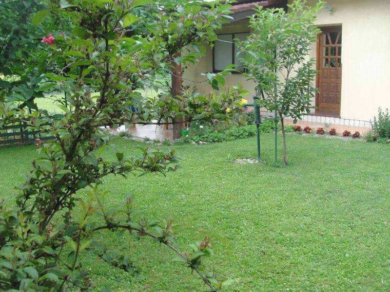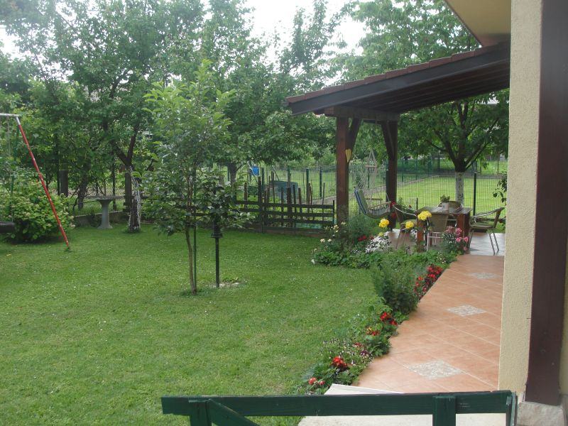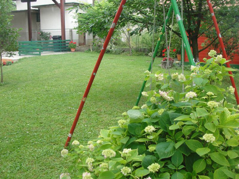 Kuća ima jako lijepu, uređenu, okućnicu od 500 m2 i veliku nadstrešnicu