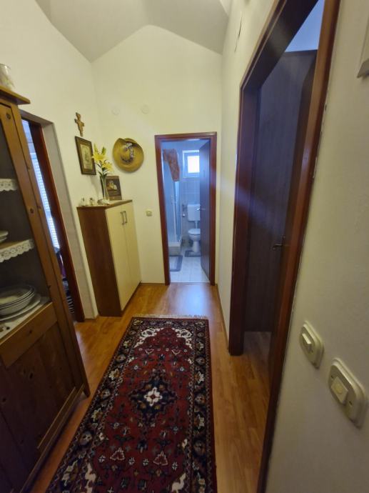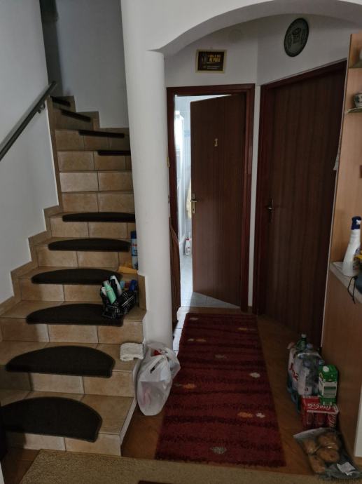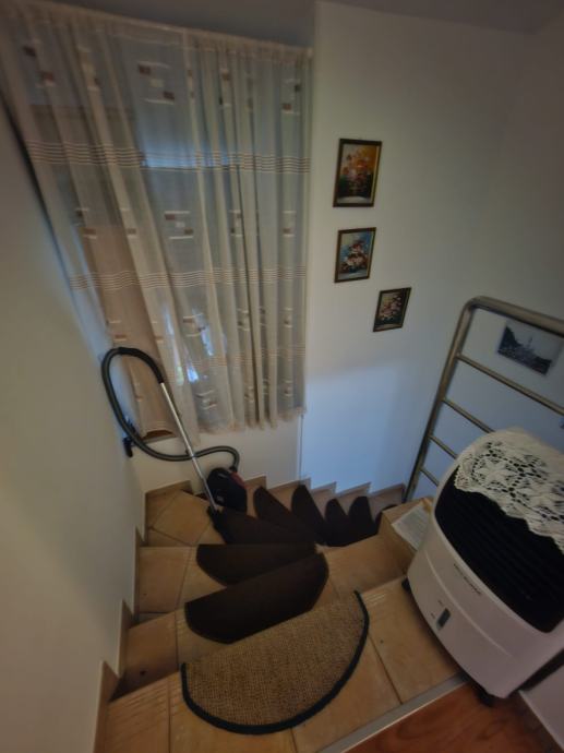 Prodaje se kuća na mirnoj lokaciji u Zatonu. Prodaje se sa svim namještajem koji se nalazi u kući. Od kućanskih aparat kuća ima: perilicu suđa, perilicu rublja koja se nalazi u garaži., televizor, pećnicu, kuhalo za vodu, frižider sa zamrzivačem koji se nalazi u dnevnom boravku, te sa frižiderom i zamrzivačem koji se nalaze u garaži. Na slikama nedostaje kupatilo/wc koji se nalaze u prizemlju koje je opremljeno kao i gornje kupatilo.