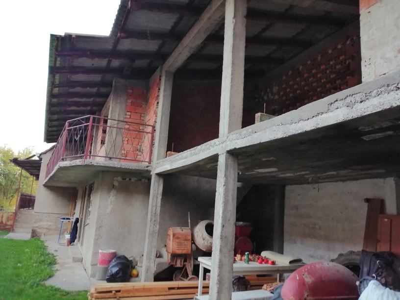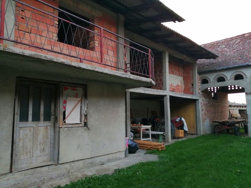 Visoka prizemnica u Zbjegu na čestici od 1481 m2, sa štagljem i garažom u dvorištu, plus građevinski plac od 1449 m2 isto u selu, sveukupno 2930 m2 zemljišta. Kuća ima priključak struje i vode, te bunar u dvorištu, dok je dio kuće odmah useljiv, a dio u roh bau fazi...