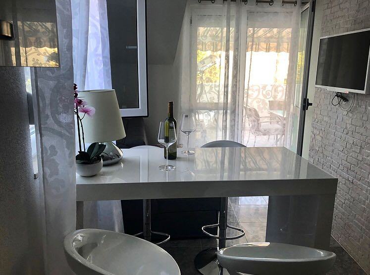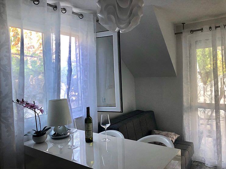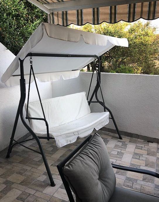 Iznajmljuje se prelijepa manja kuća, udaljena od mora cca 40 metara, kompletno preuređena. Dvije velike terase, na jugu od 22 m2, na sjeveru od 15 m2. Sastoji se od dvije sobe, kupaonice, kuhinje s dnevnim boravkom. Klimatizirana, satelitska televizija. Ima mogućnost korištenja igraonice za djecu (trampulin, ljuljačka, pješčanik). U cijenu uključena boravišna pristojba, režije, wi-fi. Cijena 70 do 120 Eur/noćenje (ovisno o periodu). Najmoprimci ne plaćaju proviziju.