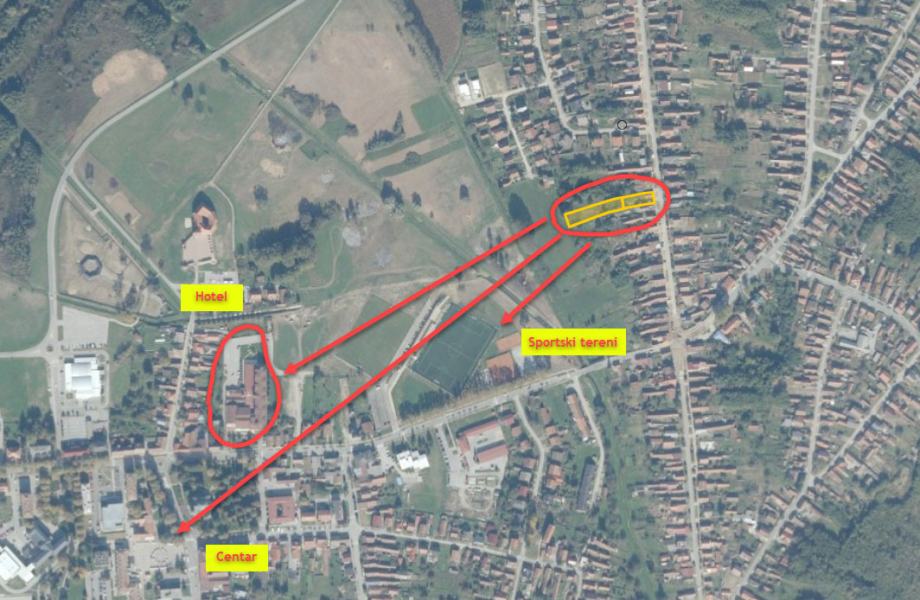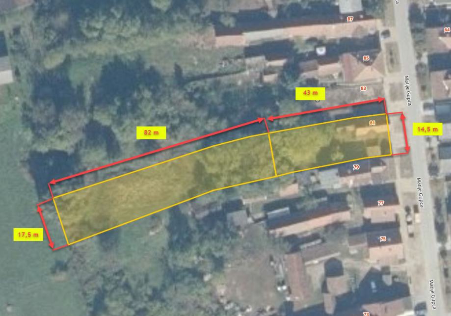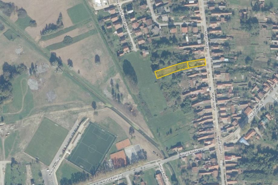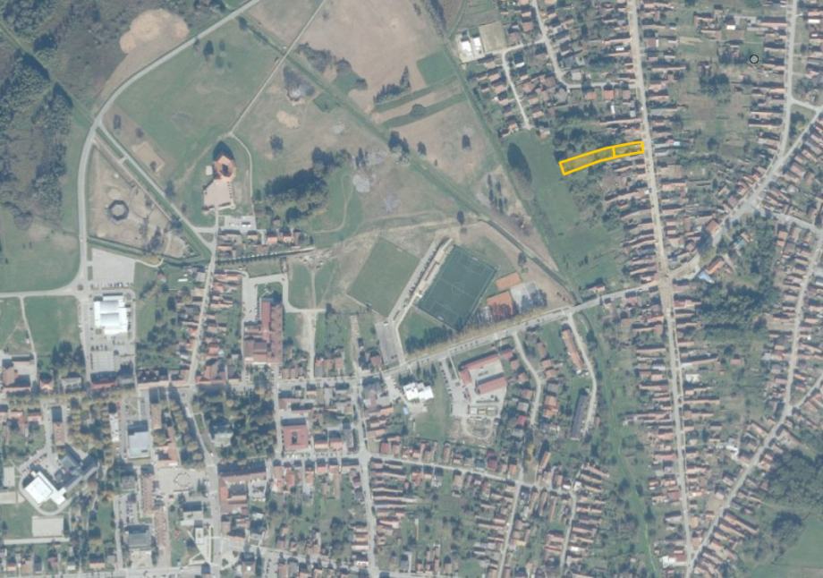 Nekretnina se proteže na dvije parcele - prednjoj veličine 660 m2 (na kojoj se nalaze izgrađeni objekti) te stražnjoj, veličine 1.325 m2. U neposrednoj blizini stražnje čestice planira se probijanje ceste te proširenje stambenog naselja, tako da postoji mogućnost budućeg odvajanja stražnje čestice i samostalne prodaje čestice kao građevinske.
