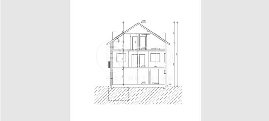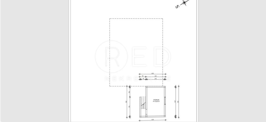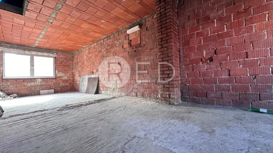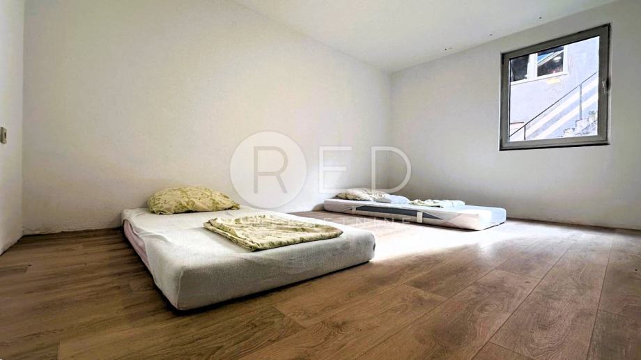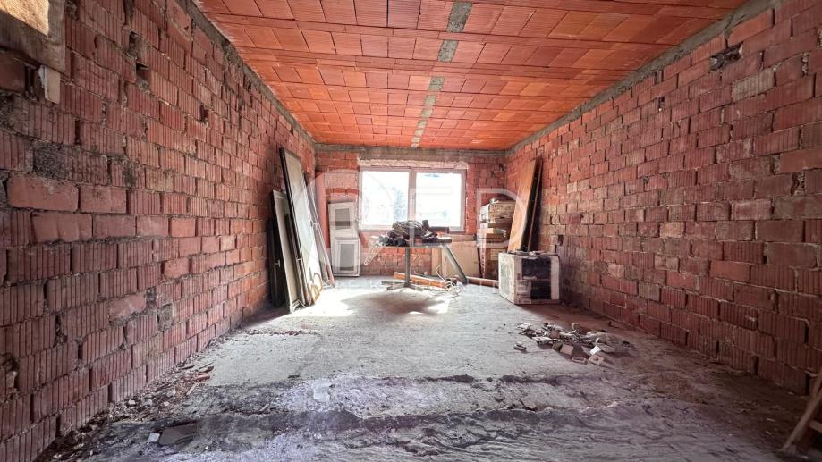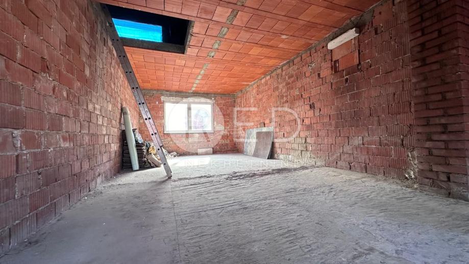 Na neuređenom prvom katu i visokom potkrovlju se mogu napraviti dva dvoetažna stana od cca 90 m2.