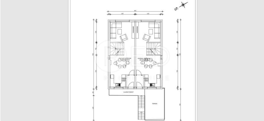 U prizemlju se nalaze 2 stana veličine 45 m2.