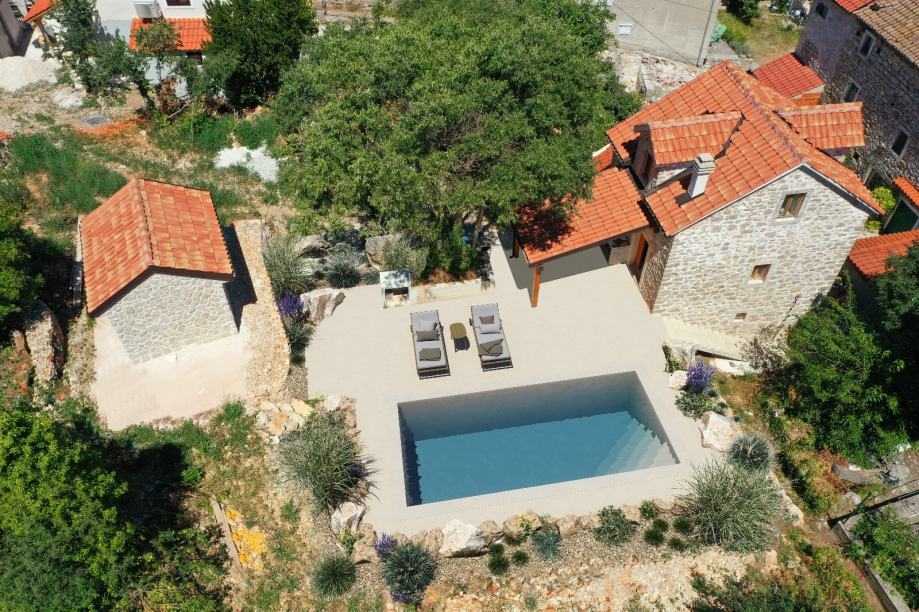 Prekrasna renovirana kamena kuća na otoku Zlarinu – samo 200 m do mora, s velikom okućnicom i bazenom.
