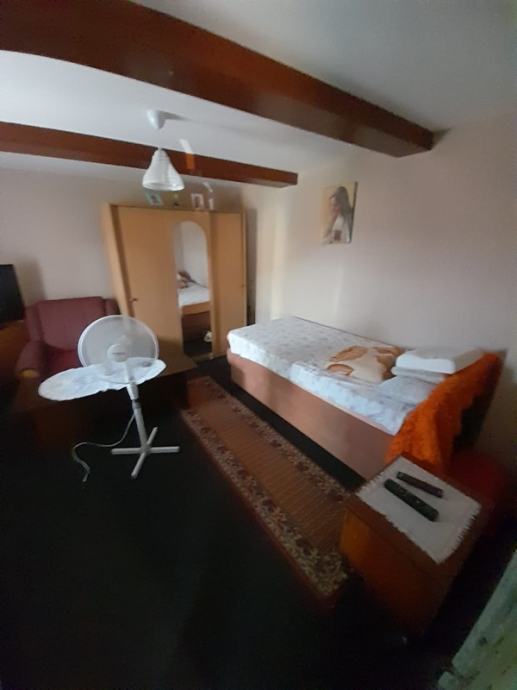 Prodaje se starija drvena kuća s gospodarskim zgradama. Površine 109 kvadrata + dvorište 1053 kvadrata. Useljiva, može s namještajem i bez njega. Struja, voda, asfalt.