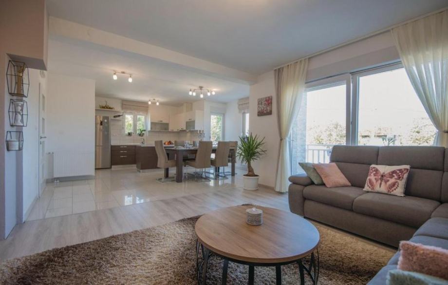 Villa se sastoji se od gornje etaže veličine 143m2 na kojoj se nalazi kuhinja i prostrani dnevni boravak, te tri spavaće sobe. Sve prostorije opremljene vrhunskom stolarijom, kućanskim aparatima i namještajem.